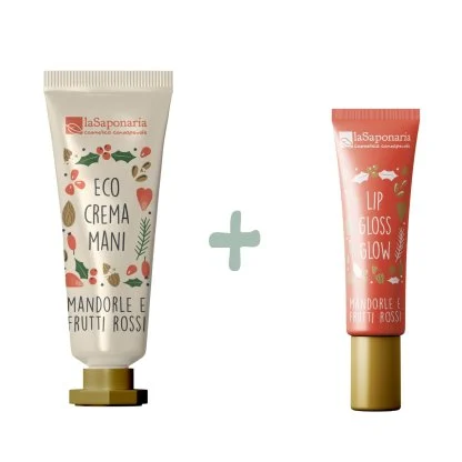Lo scrigno contiene una Crema mani e un Lip Gloss Glow
