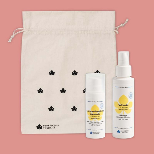gel da barba: Aqua [Water], Sodium cocoyl sarcosinate, Xanthan gum, Helichrysum italicum flower extract*, Malva sylvestris (Mallow) flower/leaf extract*, Urtica dioica (Nettle) leaf extract*, Glycerin, Decyl glucoside, Coco-glucoside, Sodium olivamphoacetate, Niacinamide, Urea, Fructose, Glycine, Inositol, Glyceryl oleate, Sodium PCA, Tetrasodium glutamate diacetate, Hexyl cinnamal, Sodium dehydroacetate, Lactic acid, Citronellol, Hydroxycitronellal, Dehydroacetic acid, Benzyl alcohol, Parfum, Sodium lactate, Phenoxyethanol, Sodium benzoate.*da agricoltura biologica