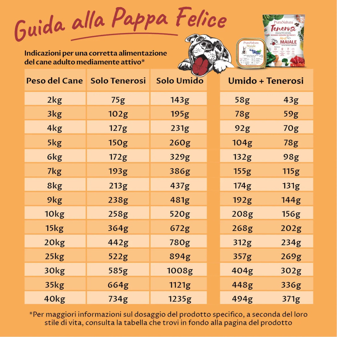 Per altre info di somministrazione visionare il sito del produttore https://www.puranatura.eu/pages/tenerosi-bocconcini-morbidi-cane