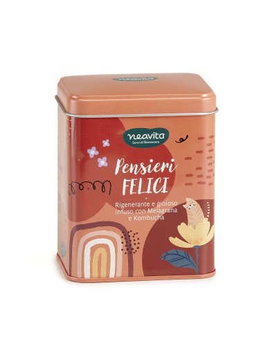 Pensieri felici è un infuso in cui la felicità si svela nei frutti rossi di melagrana e nelle proprietà rigeneranti della kombucha. Un infuso che sprigiona una sensazione di serenità.