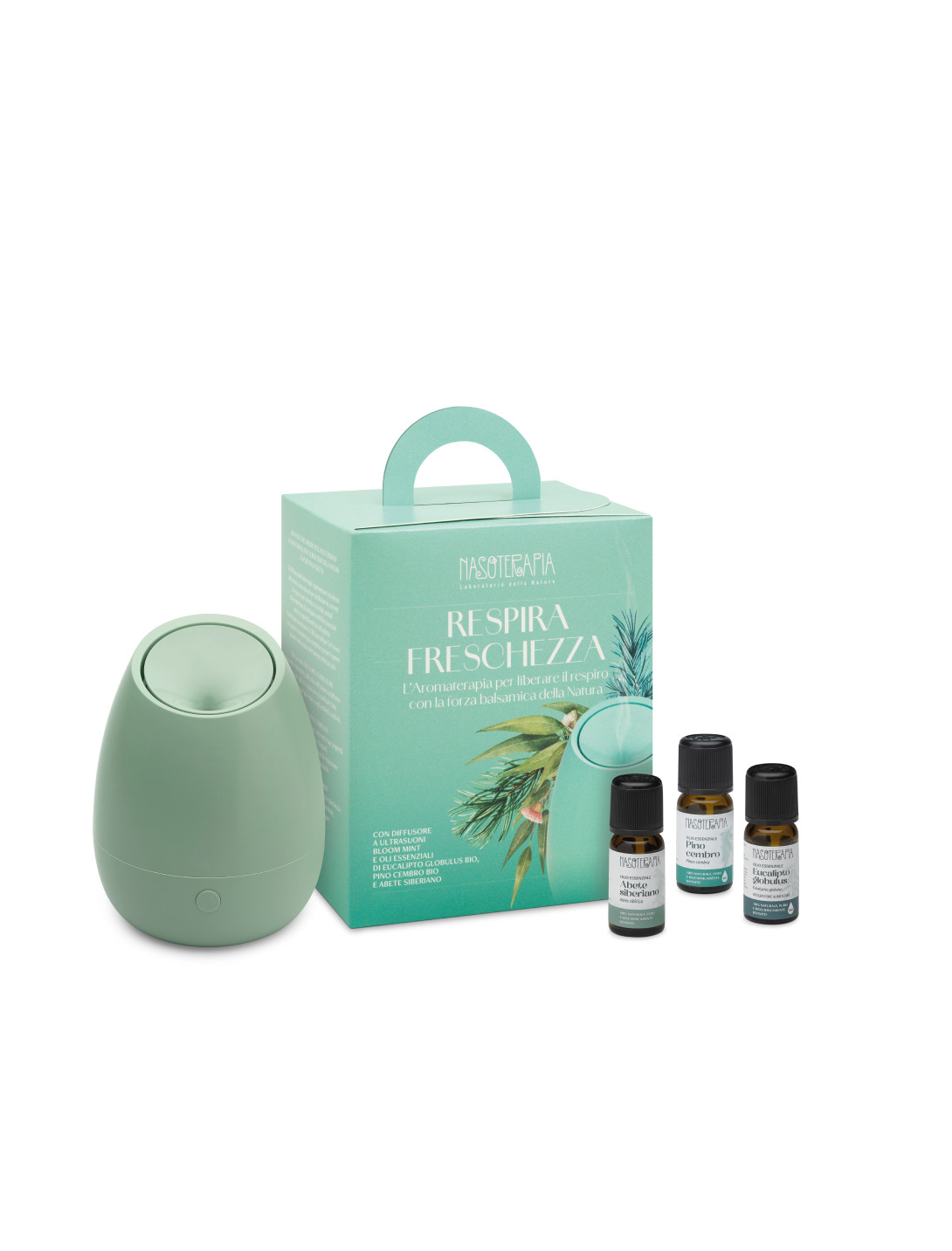 - 3 Oli Essenziali puri e biologici (5ml) di Eucalipto Globulus, Pino Cembro e Abete Siberiano; l'aromateria perfetta per liberare il respiro con la forza balsamica della natura.