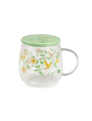 Tazza in Vetro Borosilicato con Coperchio in Ceramica